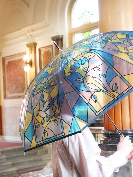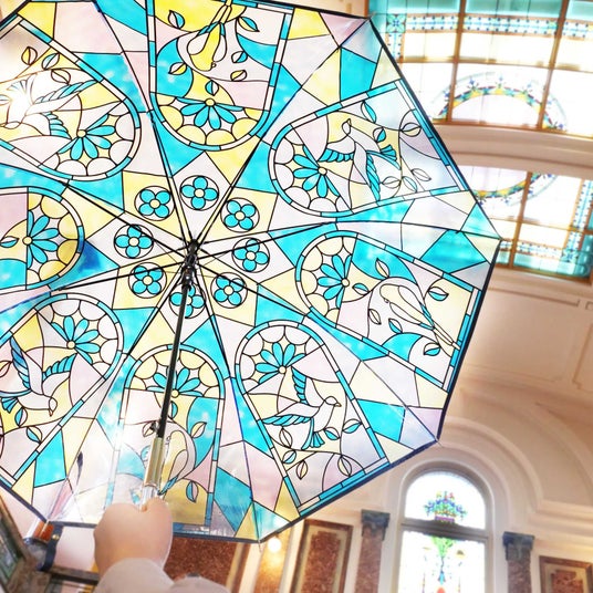【ステンドグラス風アンブレラ】本物のステンドグラスを思わせる、光を透かす透明感と繊細なデザインが人気のシリーズ、アンシャンテ。