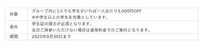 なんと、1名でも学生さんがいれば全員対象で、