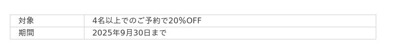5名利用の場合、なんと1グループ当たり15,000円OFFに!