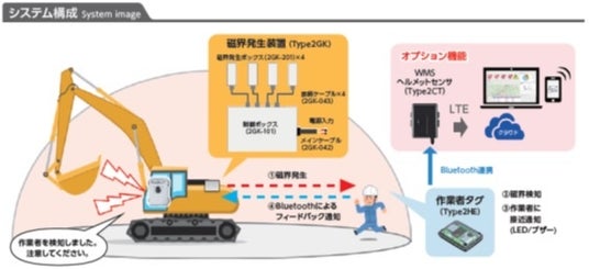 従来の製品で支持の高かった、重機よりも先に作業者にアラートを報せる機能を踏襲。