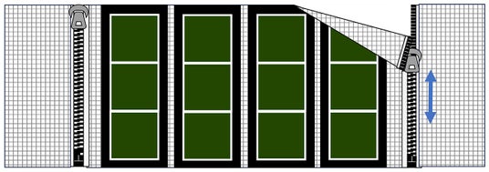 年間発電量を最大化させる設置方法(奥)・従来の設置方法(中央)・ファスナー取り外し式工法(手前)