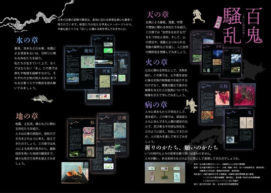 日本はこれまで、地形や気象等の要因から地震や風水害、感染症など数多くの災害に見舞われてきました。その記憶や歴史は各地の妖怪・災害伝承や信仰、まじない等にも垣間見られます。日本がどのような国で、どのような災害に遭遇してきたか、あるいは、どのように人はそれを捉え、心の安寧を得ようとしてきたかを、様々な観点から紹介します。常に私たちは想定外の厄災と隣り合わせであることを知り、これからも災害と、未知の出来事や脅威を前に心の隙間から生じる妖怪たちと共に歩んでいきましょう。