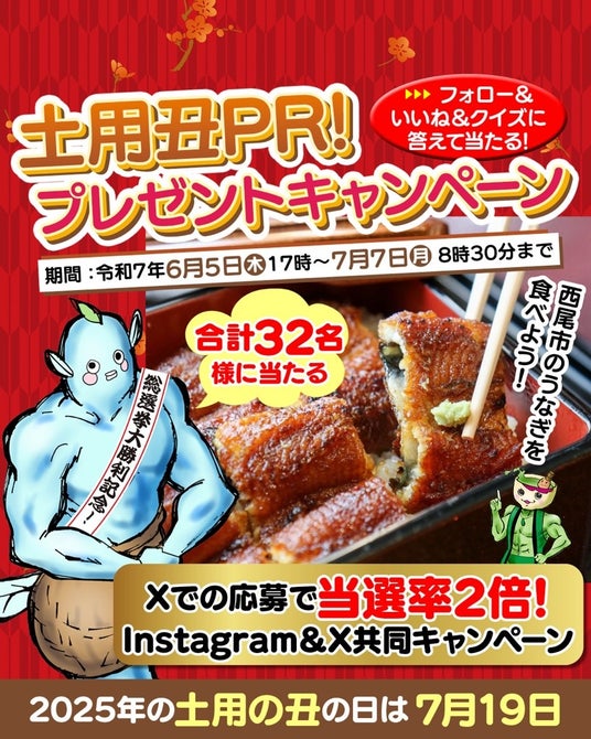 愛知県西尾市では、2025年6月5日(木)より、「西尾市のうなぎを食べよう!土用丑PR!プレゼントキャンペーン」をスタートしました。