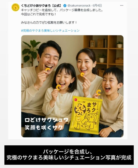 ふんわりサクサクッとした軽い食感が特徴のスナック菓子『サクまろ』のコンビニエンスストアやスーパーマーケットでの販売強化に伴い、SNS上のコミュニケーションを起点とし、生成AIを駆使してスピード感のあるコンテンツ制作を行う「#究極のサクまろ美味しいシチュエーション」プロジェクトが6月2日からスタートしました。