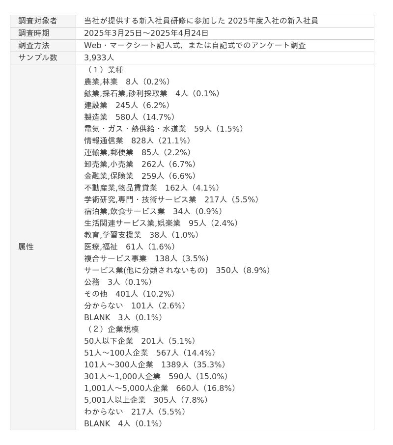 *本調査を引用される際は【ラーニングイノベーション総合研究所「新入社員意識調査2025(3933人のキャリア志向編)」】と明記ください