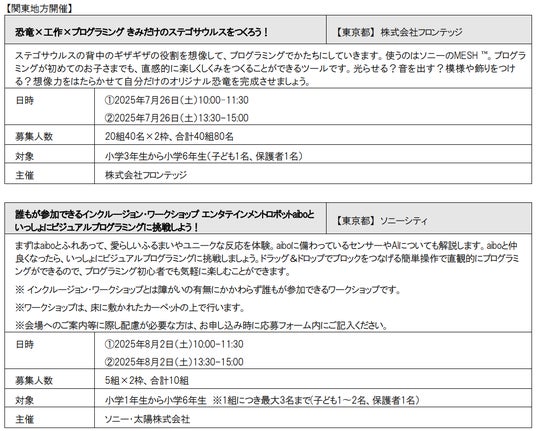 プログラミングや科学工作など、ソニーグループのアセットを活用した多様なワークショップを全国で開催します。
