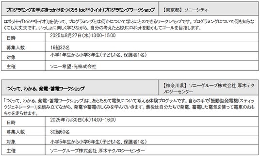 ソニーグループ株式会社(以下、ソニー)は、教育プログラム「CurioStep with Sony(キュリオステップ)」を展開しています。プログラムの一環として、今年も7月26日(土)から8月27日(水)にかけて、小学生から高校生までを対象にした、子どもたちの学びや好奇心を広げるイベント「CurioStep サマーチャレンジ2025」を開催します。