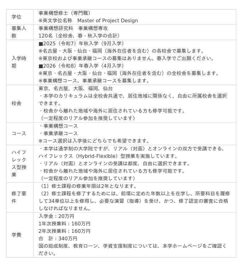 詳細は事業構想大学院大学ホームページ「入学案内」のページをご確認ください。