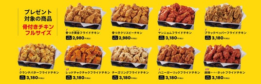 骨付き黄金フライドチキンを始めとする骨付きチキンのフルサイズ全9種類が対象