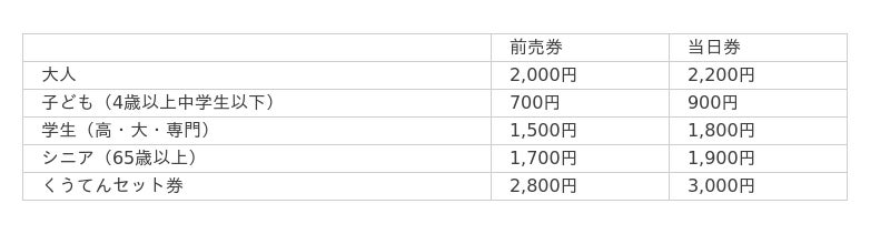 ※くうてんセット券は、一般入場券+くうてん1,000円分お食事券のセット券です。