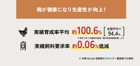 『トリグーン』の全国展開に向けて、効果の無料検証を実施しております。約10万円分の製品を養鶏農家様に無料提供し、『トリグーン』使用前後における鶏育成比較データをお預かり後、効果検証レポートを作成いたします。養鶏農家様にとっては、実際の効果を無料で確認できる貴重な機会です。