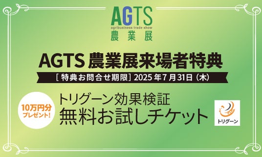 『AGTS農業展』来場特典として、効果を無料で検証いただけます。最大約4,000羽分の『トリグーン』を無料でご提供いたします(10万円相当)。
