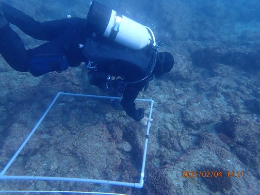 磯焼けした徳島県美波町近海:コドラート調査の様子