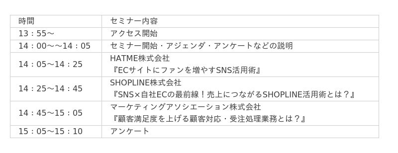 ■ セミナースケジュール及び内容