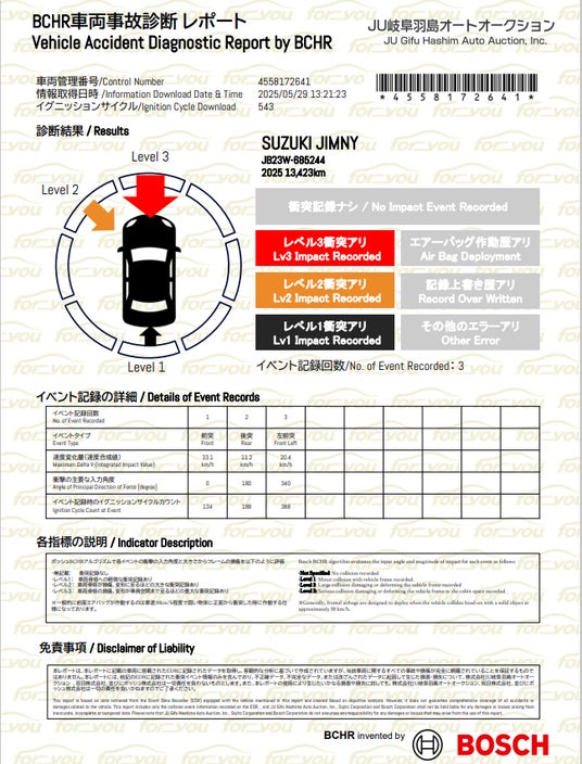 ボッシュ株式会社(代表取締役社長:クリスチャン・メッカ― 以下 ボッシュ)は、このたびEDRのデータを活用することで正確で効率的な車両評価を可能にする技術、「Bosch Car History Report」(以下「BCHR」)の本格導入に向け、双日株式会社との間で代理店契約を締結し、導入プロジェクトの第一弾として、2025年10月より岐阜県のJU岐阜羽島オートオークションとBCHR導入を開始します。