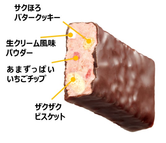 本商品はいちごケーキをテーマにしたブラックサンダーの公式いもうと分です。ザクザクビスケットを配合し、ブラックサンダーシリーズらしい食べごたえのある食感は残しつつ、甘さと乳のコクを感じられる生クリーム風味パウダーときゅんとあまずっぱい味わいがアクセントのいちごチップを配合することで、まるでいちごケーキを食べているようなうきうきするおいしさを手軽にお楽しみいただけます♪