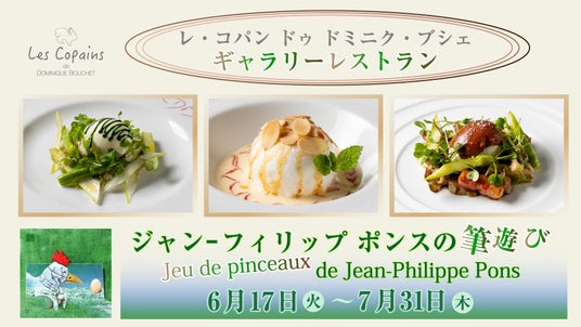 2025年ギャラリーレストランの第三弾は、「ジャン-フィリップ ポンスの筆遊び~Jeu de pinceaux de Jean-Philippe Pons」と題し、フランス出身のアーティスト、ジャン-フィリップ ポンスさんの作品を7月31日(木)まで展示します。期間中はちょっぴり辛口な絵をモチーフにシェフ ドミニクが考案したコラボレーションメニューをご提供いたします。この機会にぜひご賞味ください。皆様のご来店をスタッフ一同お待ちしております。