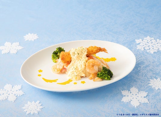 メニューは、キャラクターをイメージしたピラフや愛知県で名物の卵が入ったナポリタンパスタ、味噌カツカレーなどのフードメニューと、作中のシーンをイメージしたフレンチトーストやスケートリンクを表現した涼し気なコーヒーゼリー、作中に登場したいちごたい焼きをイメージしたデザートメニューなどの他、キャラクターの衣装をイメージしたドリンクなど、工夫を凝らしたオリジナルメニューを取り揃えました。