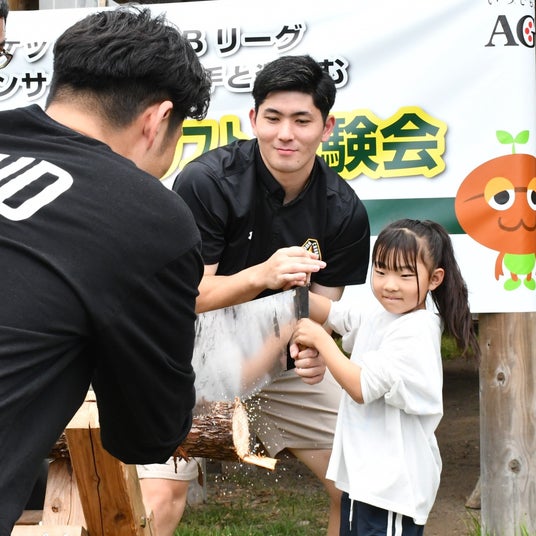 参加者からは、「森や水、そして動物について色々なこと教えてもらえて楽しかった」「生まれてはじめて焼印(やきいん)をしてもらった」「憧れの選手と一緒に丸太切りができて嬉しかった」「自分たちが住んでいる群馬県に味の素AGFの工場があることをはじめて知った」「貴重な体験をさせてもらい思い出に残る父の日になった」「これからはサンダーズも味の素AGFも両方応援したい」などの感想をいただきました。