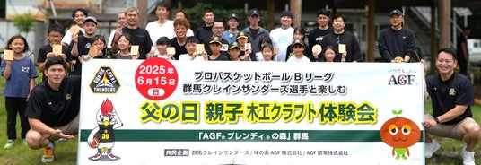「ココロとカラダの健康」への貢献を目指す味の素AGF株式会社(代表取締役社長:島本 憲仁 以下、味の素AGF)は、「群馬クレインサンダーズ」を運営する株式会社群馬プロバスケットボール コミッション(代表取締役社長:阿久澤 毅、所在地:群馬県太田市)と、地域社会貢献活動第二弾として、父の日に一般公募参加者14組28名の親子を招いた「親子木工クラフト体験会」を2025年6月15日(日)、「サンデンフォレスト」(前橋市粕川町)にて開催しました。