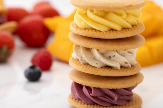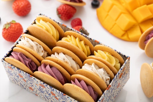 さらに、季節限定フレーバーをアソートした『バタリーサンド』も販売中です。濃厚な甘さと爽やかさが絶妙な「パッションマンゴー」に、芳醇で上品な「ラムレーズン」、苺・ブルーベリー・ブラックベリー・黒スグリを贅沢に使った「ルージュ」。彩り豊かな3種類のバターサンドを1箱で楽しむことができます。ひんやりと軽い口当たりは、暑い日にもぴったり。