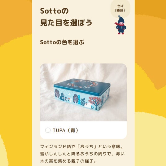 ギフトカードと専用サイトはどちらもSottoの世界観を引き継いだデザインとなっています。画面に従いながらスクロールしていき必要な項目に入力をしていくと世界にひとつだけのSottoが完成します。