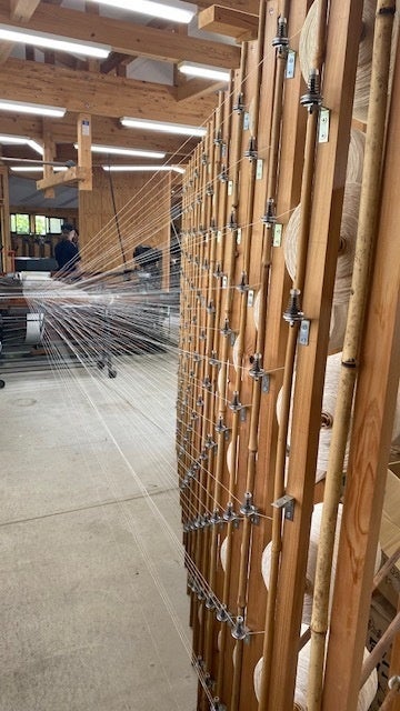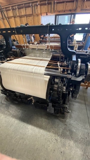 有限会社エニシングの前掛けは、80~100年前に作られたトヨタ製・スズキ製のシャトル織機で織られています。