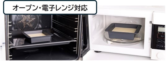 耐熱・耐冷性に優れたLCP樹脂を使用することで、生地への熱の通り方やふくらみ方・キメの細やかさは金属型と同等で、オーブンにも電子レンジにも対応しているため、製菓だけでなく調理でも使用することができます。