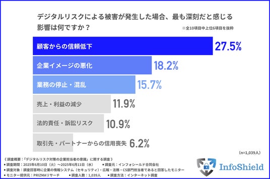 デジタルリスク被害による深刻な影響は「顧客からの信頼低下」「企業イメージの悪化」「業務の停止・混乱」