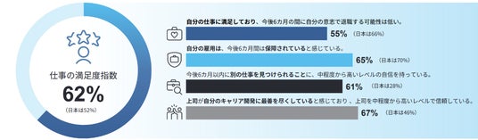 テーマ2.仕事の満足度指数:グローバル62%(前回調査+1) 日本52%(前回調査+3)