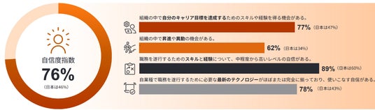 グローバルの自信度指数は76%に対し、日本は46%となりました。日本の結果では、下記2項目において2024年比で労働者の回答割合が増えています。