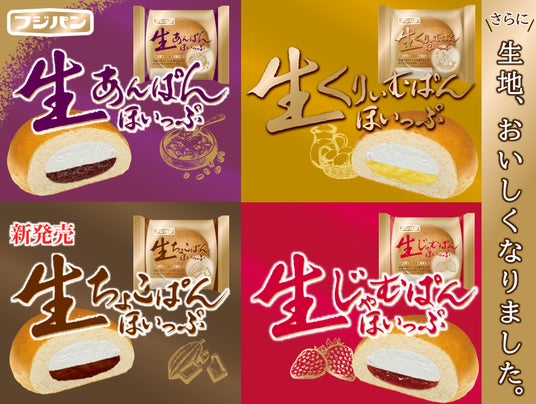 フジパン株式会社(愛知県名古屋市)は、『生あんぱん ほいっぷ』『生くりぃむぱん ほいっぷ』『生じゃむぱん ほいっぷ』『生ちょこぱん ほいっぷ』をリニューアルいたします。「生セレクション」は“そのままでおいしい“をコンセプトに、生地のおいしさにこだわって開発されたシリーズです。