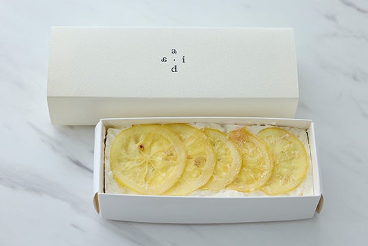 また届いたばかりの広島産・無農薬「瀬戸内レモン」を使用し、果汁を絞ってリコッタチーズに合わせ、シロップ漬けをカッサータのトッピングにしました。そのほか、クローブとコリアンダーを混ぜ込んだメレンゲや、上品な甘さを醸し出す十勝産小豆を入れているのが味わいのアクセントに。ヴィラ アイーダらしい、自然の調和からのインスピレーションで生まれた一品です。