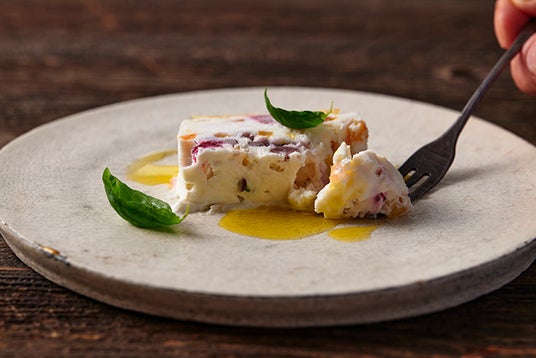 イタリア・シチリア島で生まれた伝統的なドルチェ「カッサータ」は、リコッタチーズをふんだんに使い、ドライフルーツやナッツなどをたっぷり加えて冷やし固める、色鮮やかでさっぱりとした味わいのアイスドルチェです。