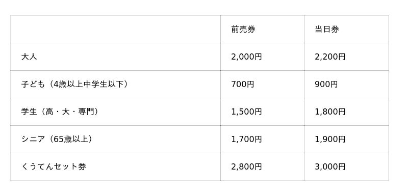 ※くうてんセット券は、一般入場券+くうてん1,000円分お食事券のセット券です。