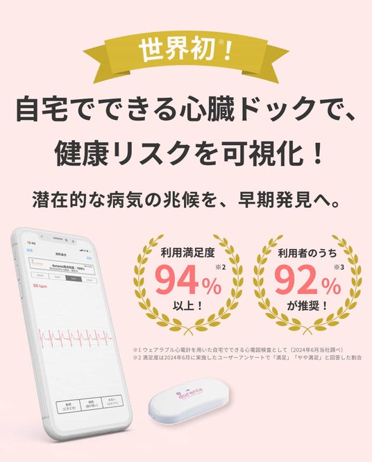 長時間のデータ取得により、これまでの健診や人間ドックでは見逃されがちだった心疾患リスクも早期に“見える化”し、突然死などで「今まで救えなかった世界で1億人の命を救う」ことを実現します。