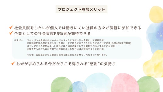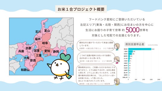 特定非営利活動法人フードバンク愛知は、令和の米騒動を受けて、ひとり親家庭などの生活にお困りの子育て家庭に向けてお米の支援を強化したく、本プロジェクトを始動。