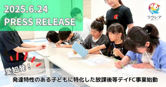 2025年7月1日、福祉×療育の領域でグループ内直営含む10施設の運営実績を持つ、株式会社ラウレア(本社:愛知県あま市)は、愛知県発!「児童発達支援・放課後等デイサービス」のフランチャイズ事業を始動します!発達障がいの子どもはもちろん、支援を必要とするものの、療育手帳を持たない「グレーゾーン」の子どもたちの支援の輪を、全国に広げていきます。