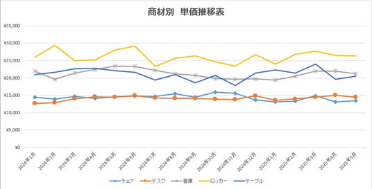 株式会社オフィスバスターズ(東京都中央区 代表取締役社長:熊谷 正慶 <東京証券取引所 TOKYO PRO Market 証券コード:5890> 以下当社)は、2025年5月度の中古オフィス家具指数を取りまとめました。毎月当社の中古オフィス家具動向を広く皆様へお伝えすることで、当社をご利用いただいた法人様および個人の皆様の動向や推移などをご案内しています。