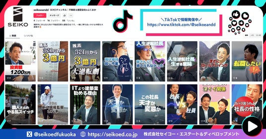 福岡で建築・新築アパート経営・不動産投資のトータル支援を行うセイコー・エステート&ディベロップメントはYouTube・TikTok採用チャンネルを公開しました。