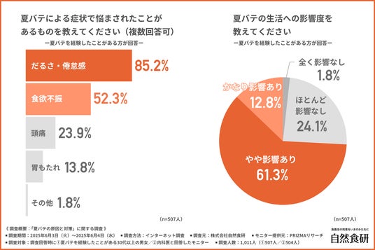 株式会社自然食研(所在地:大分県豊後高田市、代表者:佐々木 興平)は、1.夏バテを経験したことがある30代以上の男女/2.内科医を対象に、「夏バテの原因と対策」に関する調査を行いました。