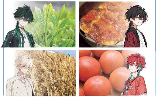 市内の特産物を擬人化したもので、市内の生産者がAI生成で作成したものです。初回登場キャラクターとして、抹茶・うなぎ・小麦・トマトのキャラクターを6月25日(水)に登場(投稿)させます。