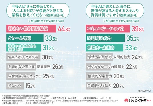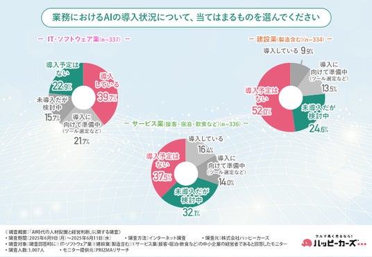 そこで今回、車買取り専門店の株式会社ハッピーカーズ(https://happycars.jp/)は、1.IT・ソフトウェア業2.建設業(製造含む)3.サービス業(接客・宿泊・飲食など)の中小企業の経営者を対象に、「AI時代の人材配置と経営判断」に関する調査を実施しました。