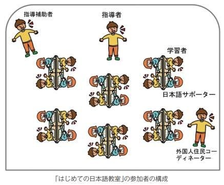 「はじめての日本語教室」は、日本語がほとんど分からない段階にある初期レベルの外国人市民の方