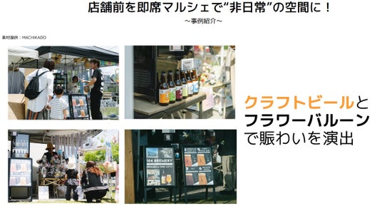 本サービスは、即席マルシェとしてクラフトビール販売ブースやフラワーバルーンを活用した装飾を組み合わせ、お店の前を“イベント空間”として演出することで、集客と話題性を同時に生み出すことができる、実用的かつ印象的な販促支援です。