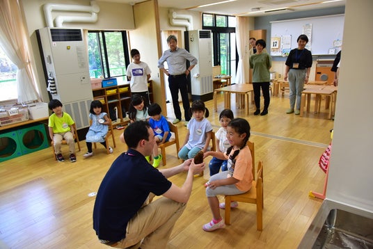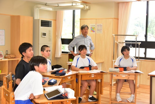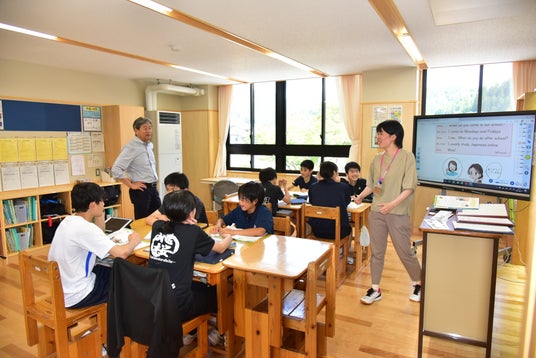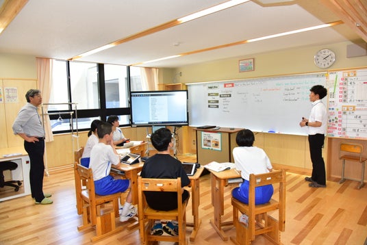 6月17日には、開校から2カ月ほど経過した義務教育学校「荘川さくら学園」を訪問し、外国語教育のようすを視察しました。
