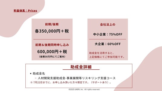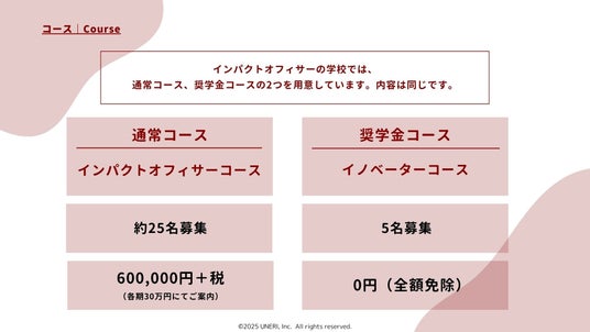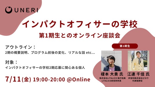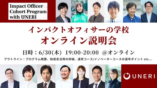 株式会社UNERI(本社:愛知県名古屋市、代表取締役CEO:河合将樹)は、個人・法人向け次世代リーダー育成プログラム「インパクトオフィサーの学校」の第2期生募集を開始しました。
