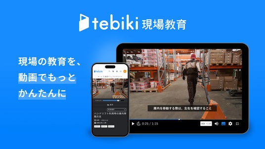 「現場の未来を切り拓く」をミッションに掲げ、デスクレスワーカー向けの現場支援システムを開発・提供しています。簡単に動画マニュアルが作成でき、閲覧データや習熟度を可視化できる動画教育システム「tebiki現場教育」や、現場帳票の雛形作成から蓄まったデータの可視化・分析まで可能な電子帳票システム「tebiki現場分析」を提供しており、現場における安全・品質・効率といった現場KPIの改善に貢献しています。