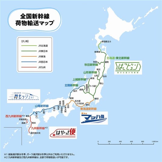 全国に広がる新幹線荷物輸送サービスのネットワーク