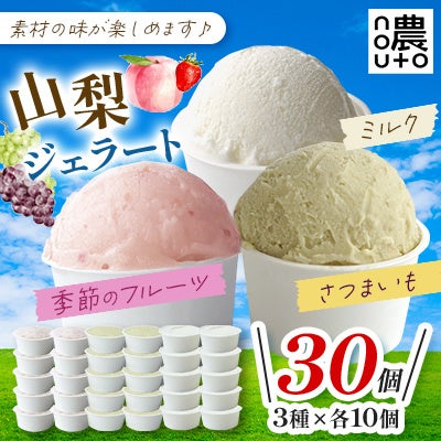 新登場!山梨・ジェラート計30個セット!季節のフルーツ・ミルク・さつまいも(各10個)こだわり素材!